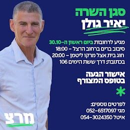 בנוסף ביום ראשון 30.10 יגיע סגן השר, יאיר גולן לסיבוב ברים וחוג בית בעיר