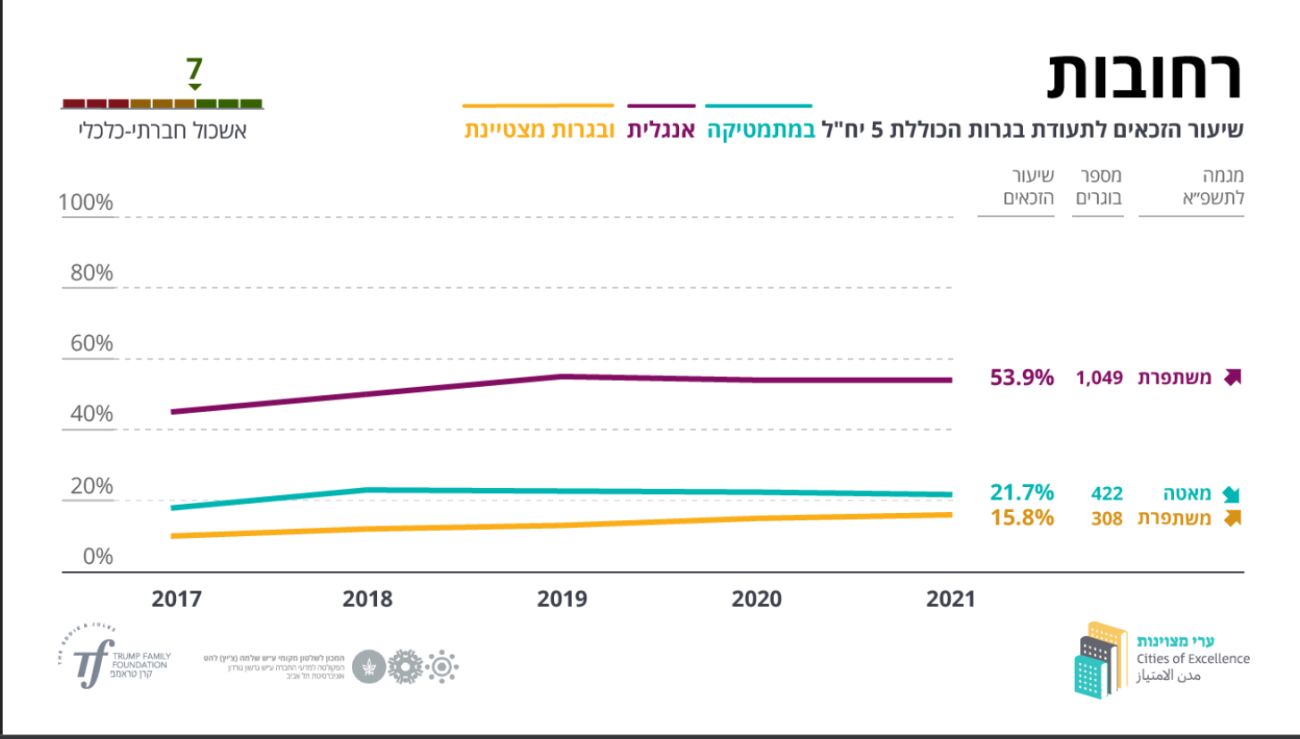 בשנת 2021 חל שיפור בשיעור הזכאות לבגרות עם 5 יח' אנגלית ובגרות מצטיינת בקרב תלמידי רחובות