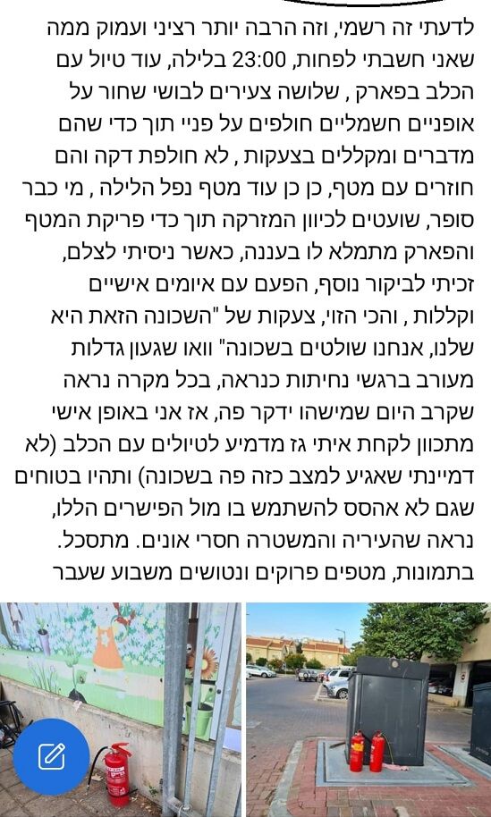 מצ"ב סרטונים, תמונות ושיח בוואטסאפ השכונתי על האירועים.
