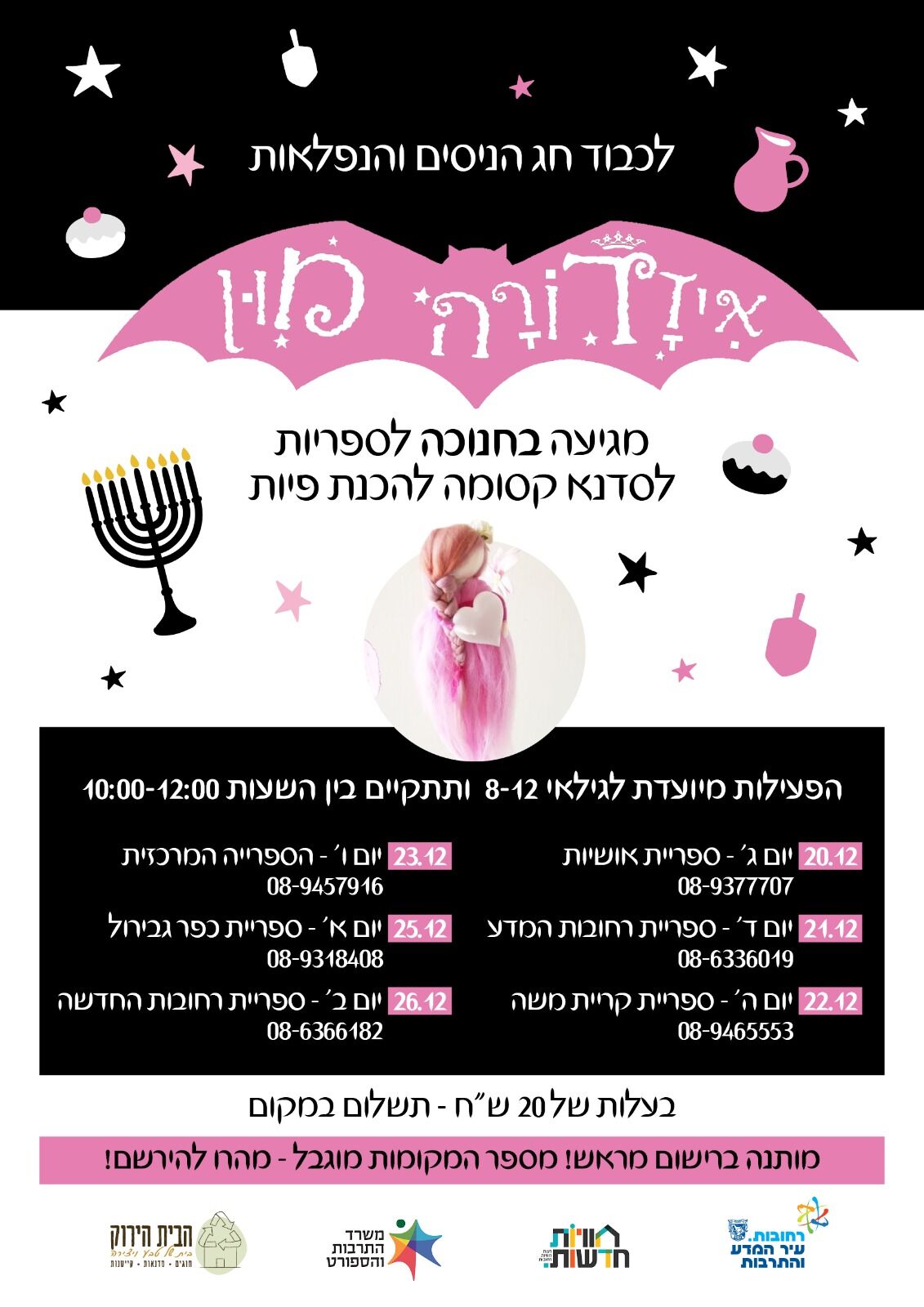בנוסף ברשת הספריות של רשת חוויות תתקיים פעילות איזדורה מון - סדנה קסומה להכנת פיות
