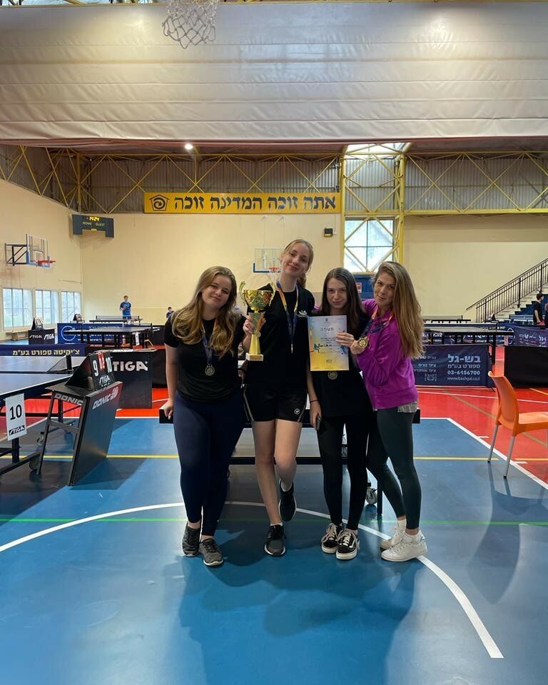 תלמידות דה שליט רחובות: יעל שוורצברג, מישל יושפה ומאיה סטמבולצ'יק הן אלופות הטניס שולחן לתיכונים