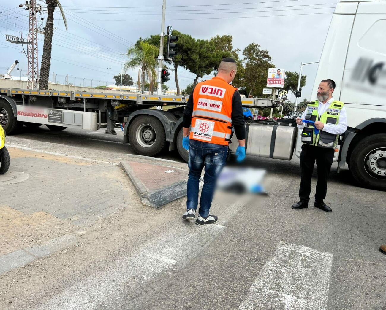 "הולכת הרגל שכבה על הכביש כשהיא מחוסרת הכרה לאחר שנפגעה ממשאית ואזרחים חילצו אותה. היא הייתה ללא דופק וללא נשימה ועם חבלה רב מערכתית קשה מאוד ולצערנו נאלצנו לקבוע את מותה במקום."