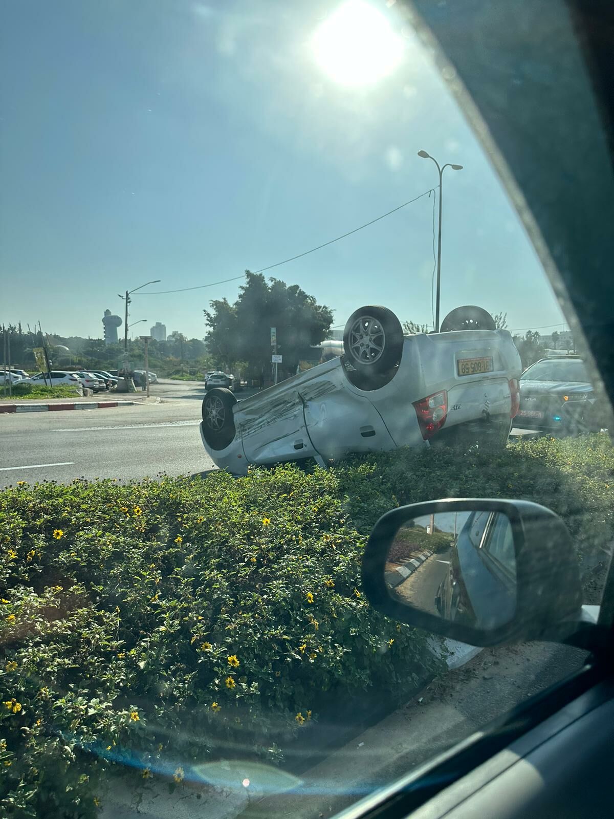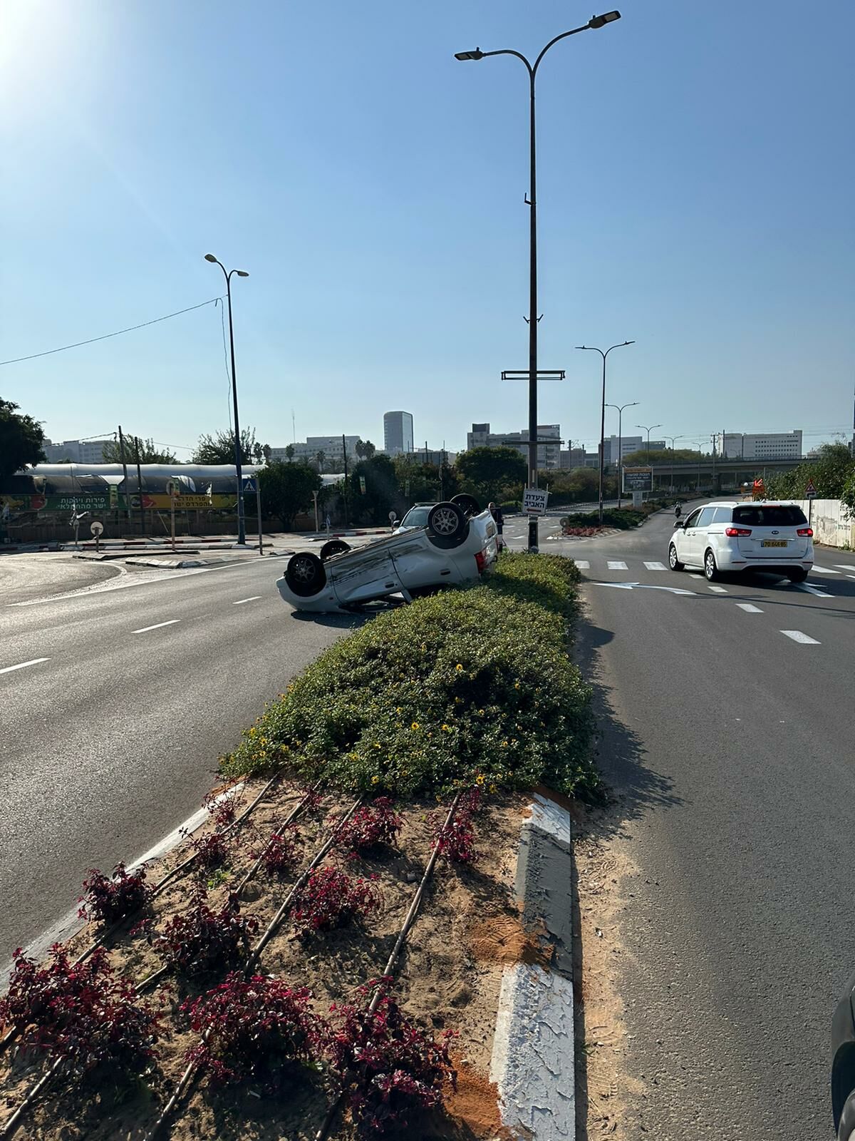 יום שישי 13:00 בכביש העוקף בדרך מנחם בגין, מסיבה לא ידועה רכב איבד שליטה והתהפך