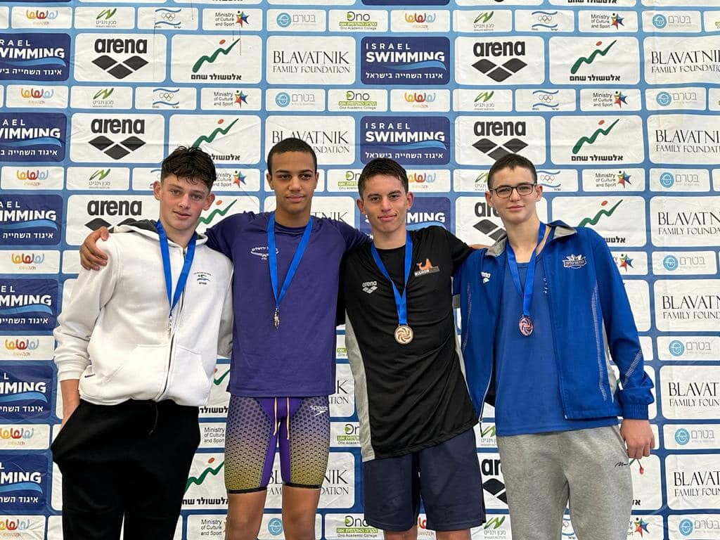 מדליית כסף לרביעיית השליחים 50×4 חופשי בנים 15-16: איתי שפייזר, אלן טרייבוך, ערן גרובמן ויפתח אלון