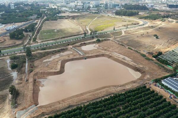 מאגר המים שהוקם באזור פארק המדע למניעת הצפות באזור