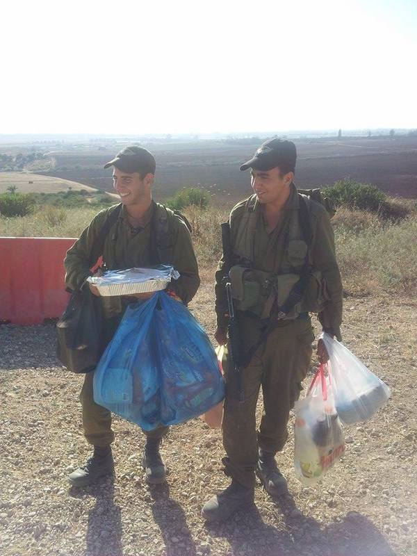 צמד סייעות מגן כרמים ברחובות ההולנדית מאיה נחום ואנט עשור, החליטו לפעול למען החיילים השוהים מאז החטיפה בנקודה מסויימת בפאתי רחובות, בתנאים קשים וללא תנאים בסיסיים. והחליטו לפנק את החיילים לקראת שבת, וביום שישי הן אספו את כל הממתקים והשתיה אשר נותרו בגן, ובנוסף מאיה ואנט קנו מכספן חלות, שימורים ועוד המון דברים ואף עפו עוגות למען החיילים ולקראת שבת הגיע מאיה נחום וילדיה הודיה וליאור עמוסים בכל טוב אל הגבעה בה שוכנת היחידה והרעיפו על החיילים המופתעים והשמחים מכל טוב.
