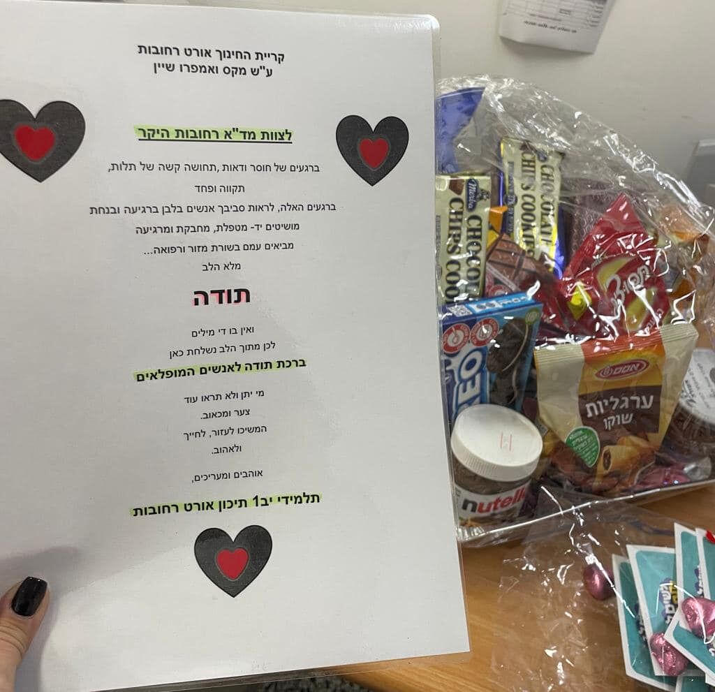 לרגל יום התודה תלמידי אורט רחובות יצאו לשטח כדי לומר תודה לנהגי האוטובוס, לוחמי האש, מד"א, עובדי הניקיון, מאבטחים ועובדי רשתות השיווק בעיר