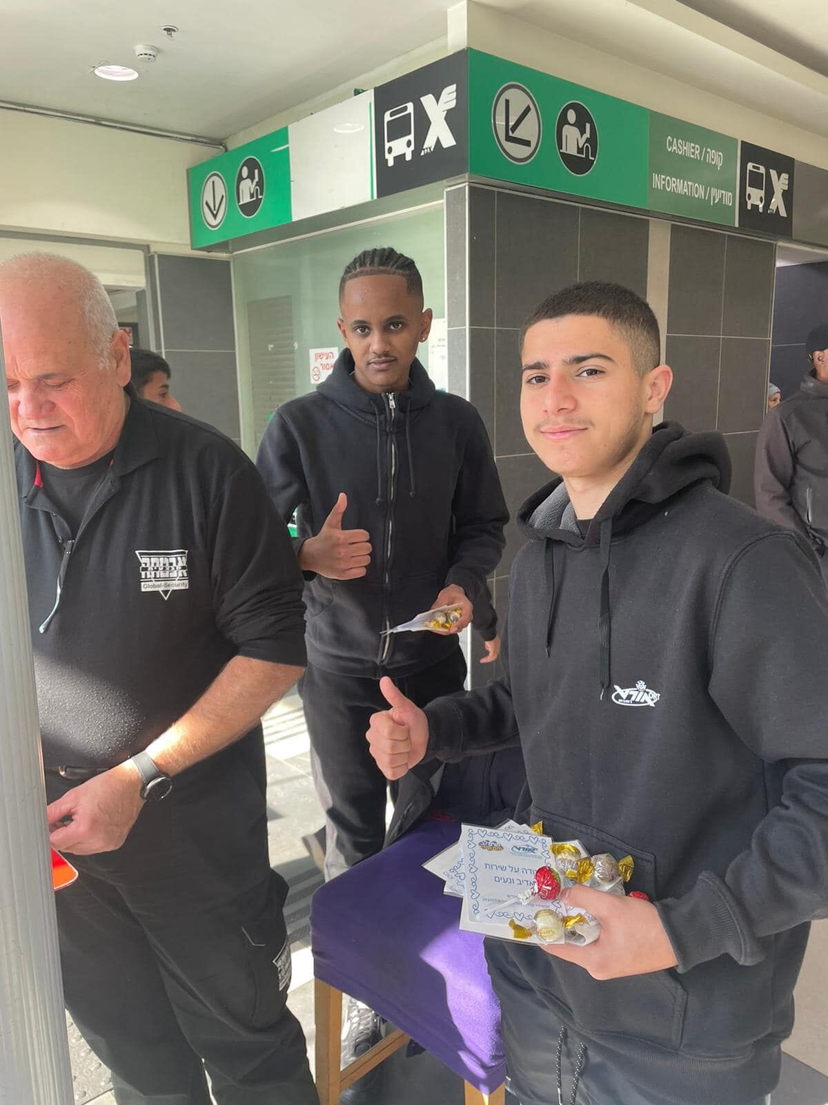 תלמידי כיתות יא1 ויא2 יצאו להביע את הערכתם לנהגי האוטובוס, העובדים בסופר, עובדי הניקיון ושומרי הקניון.