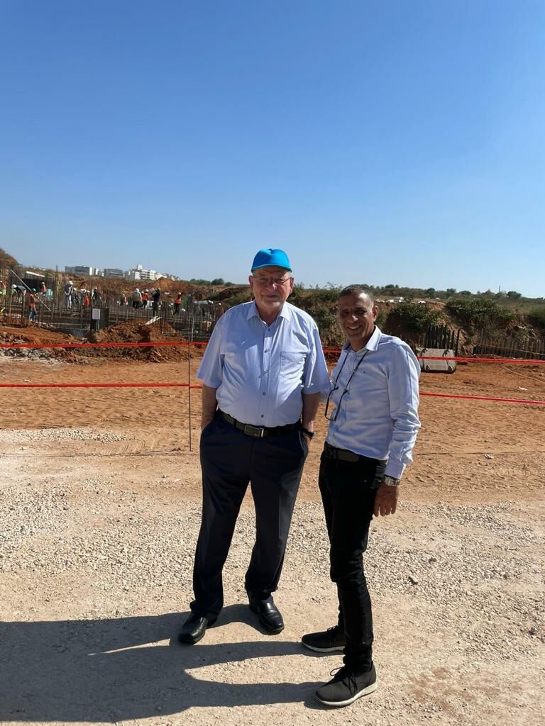 ראש העיר רחמים ומלול ומחזיק תיק הספורט רועי שרעבי בקרו ועקבו מקרוב אחר השלבים המתקדמים בבניית האצטדיון החדש והמפואר של רחובות.