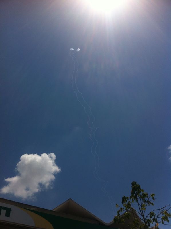אזעקה ובומים נשמעים באזור רחובות... 2 יירוטים ובודקים דיווחים על נפילה בשטח פתוח במערב רחובות... 12:30 כוחות שיטור עירוני מבצעים סריקות מערבית לרחובות בשטחים פתוחים עד עתה לא אותרה הנפילה ואין דיווחים על נפילות רסיסים בעיר