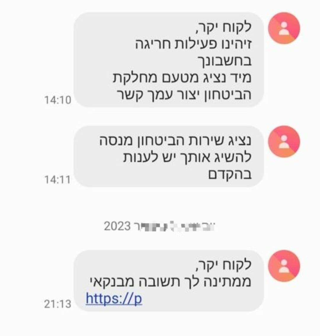 לקוחות שנפלו בתרמית והזינו את פרטי הכניסה לחשבונות המקוונים של הבנק, קבלו הודעה נוספת על פעילות חריגה בחשבונותיהם וכי ייצור עמם קשר נציג הבנק.