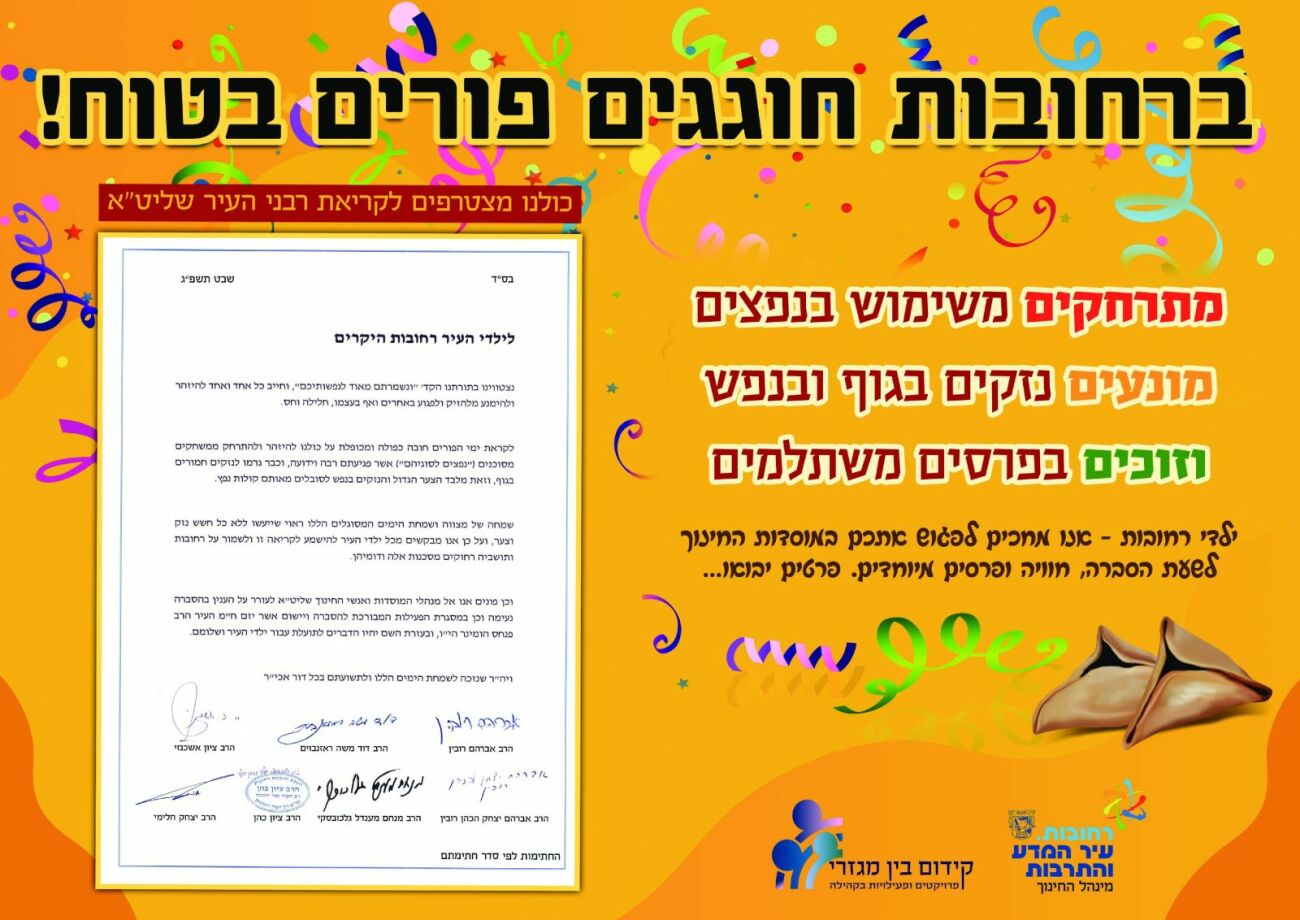 בעקבות פניות רבות שהגיעו אליו בנושא יזם חבר מועצת העיר פרויקט מיוחד במסגרתו יתחייבו ילדי מוסדות החינוך בעיר להימנע בכל שימוש במשחקים מסוכנים במהלך ימי הפורים. במסגרת הפרייקט יחתמו הילדים על התחייבות בנושא ובתמורה יקבלו שי מיוחד. בנוסף תיערך הגרלה נושאת פרסים לכלל הילדים שיחתמו על ההצהרה.
