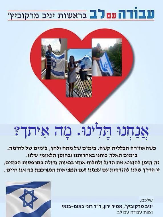 אורחהצטרפתי לרעיון המבורך. הנפתי בגאווה את דגל הלאום לתפארת מדינת ישראל ולכבוד מפקדי וחיילי צה\"ל הפועלים יומם ולילה לביטחון תושבי המדינה. מי ייתן וכולם ישובו לגבולם בשלום ובריאים20.07.14 19:27 תגובה