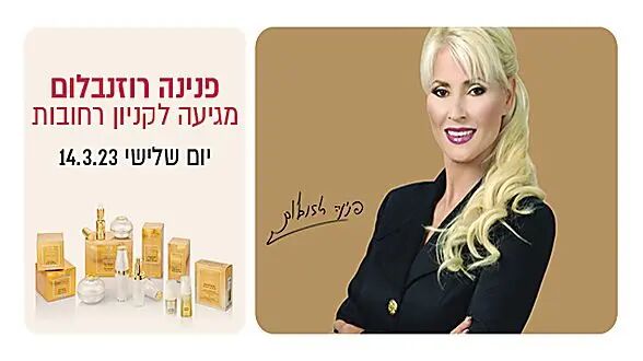 פנינה רוזנבלום מגיעה לקניון עופר רחובות ליום מכירות מיוחד של מוצריה.