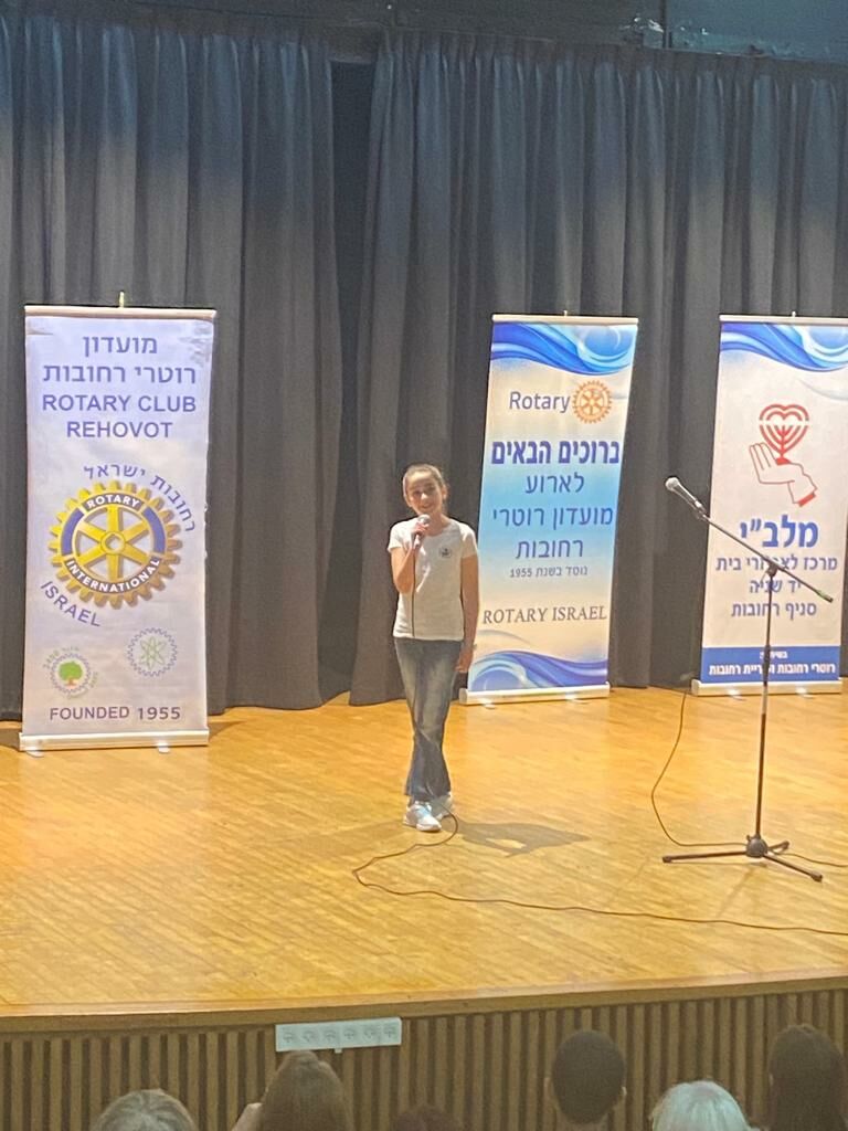תלמידת בית ספר חמ"ד בראשית רחובות, תהלי בן עמי, זכתה במקום הראשון בתחרות הנואם הצעיר העירונית של מועדון רוטרי