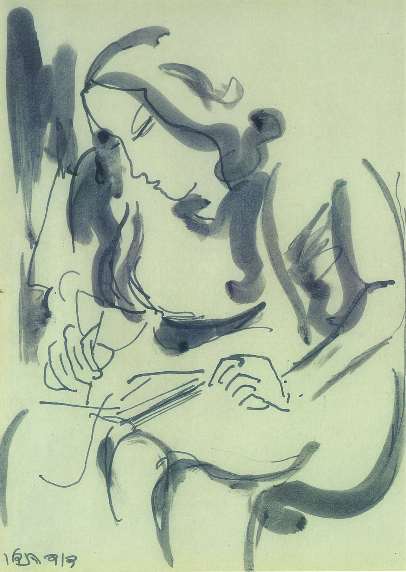 דוד הנדלר, "רעיית האמן", צבעי מים על נייר, 16.5X22 ס"מ, אוסף בנק דיסקונט
