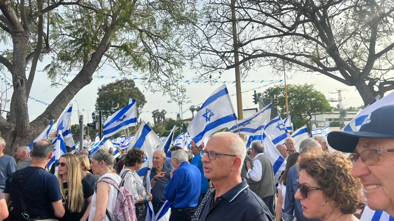 תושבים רבים הגיעו גם השבת לצומת פארק המדע ברחובות למחות נגד הרפורמה המשפטית המשפטית.