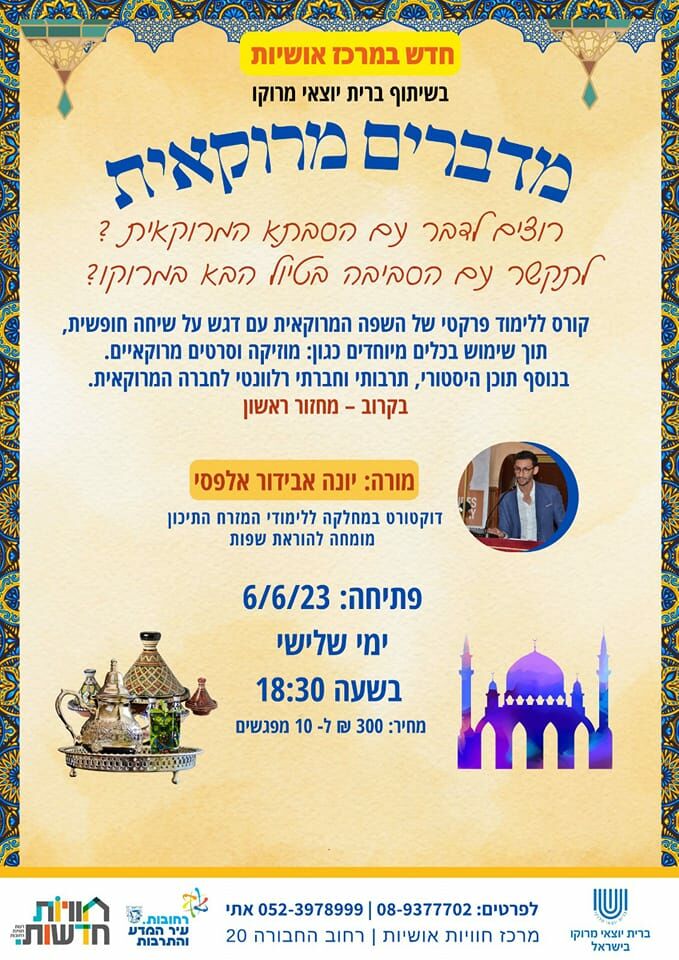 מרוקאית ברחובות! חדש במתנ"ס אושיות רחובות- קורס ללימוד השפה המרוקאית שייפתח ביום שלישי 6.6