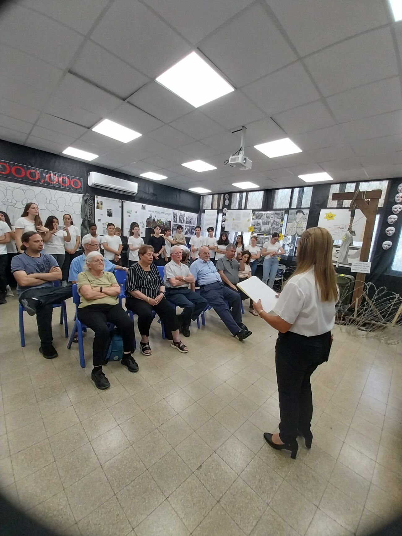 התלמידים קיבלו את ראש העיר והציגו לפניו את יצירותיהם: ציורים ודגמים, ביניהם הציור של התלמידה רותם בן זיקרי, ציור המשתקף מעינו של היהודי, בשעה שהוא נכנס לגטו באושוויץ, הוא מסתכל על השער בו הוא עומד להיכנס, שער שיוביל אותו למחנה ההשמדה ברכבות, "הדמעה בציור מציינת את העצבות שהוא ועמו צועדים צעד אחר צעד אל מותם. ברקע גשם, המצביע על הקור והאימה", מספרת רותם.
