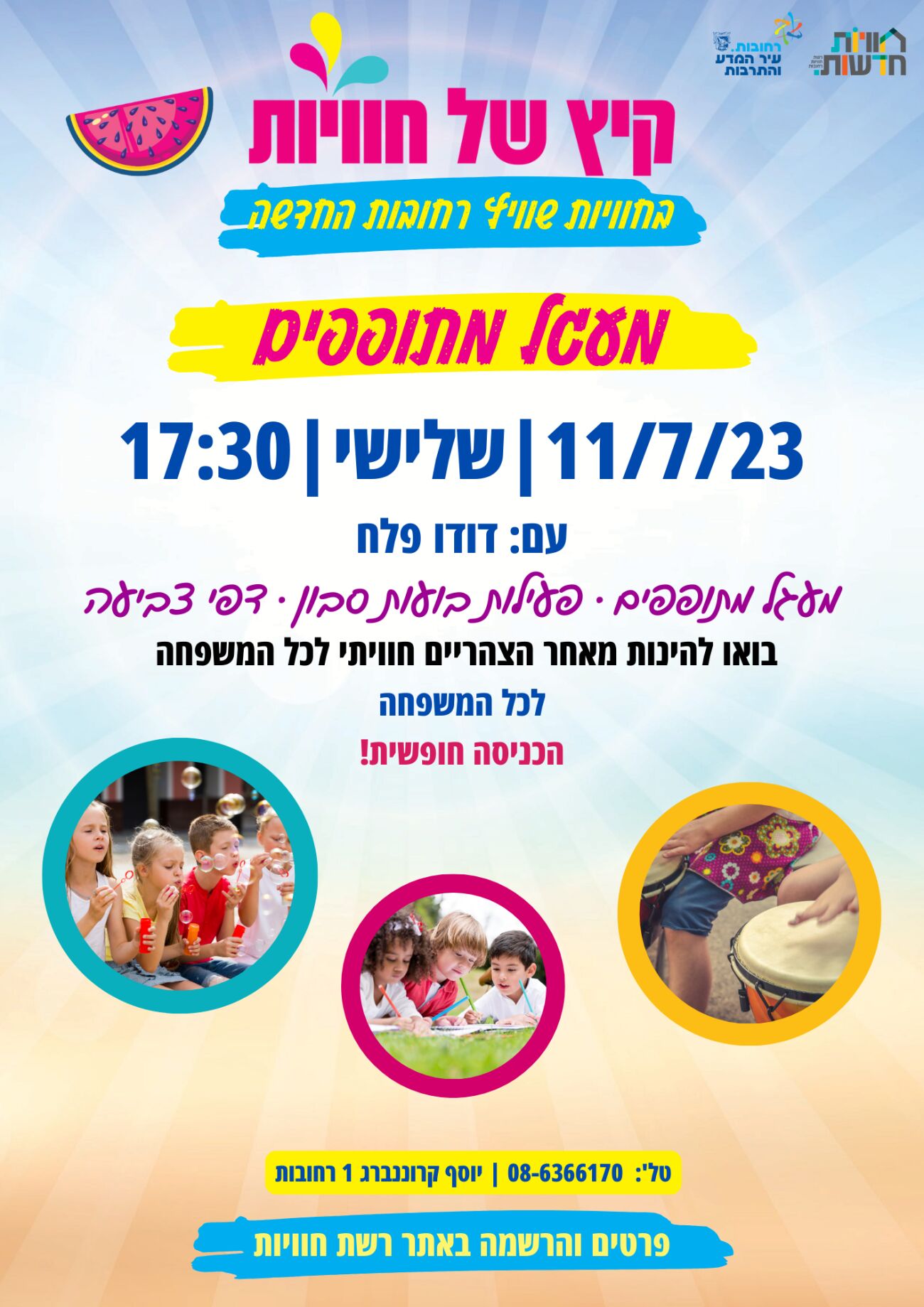 ראשון | 9.7.23 | 17:00 | גילאי 2.5-7 | 10 ₪