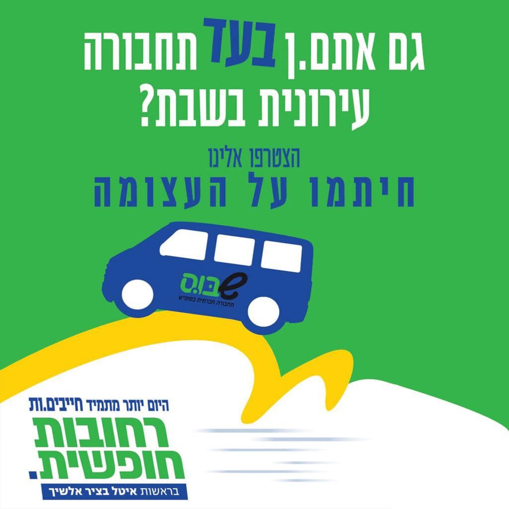 בשנים האחרונות יותר ויותר ערים ורשויות מצטרפות ליוזמה של תחבורה ציבורית בשבת, מתוך רצון לתת מענה לציבור הרחב בעיר המבקש להגיע למקומות בילוי, לים, לאירועי תרבות מחוץ לעיר ועוד. הציבור הרחב כולל גם את את בני הנוער המבקשים בסופי שבוע בייחוד בחופש הגדול לנסוע מחוץ לעיר כדי לבלות ולחזור בבטחה הבייתה, קשישים ומשפחות המבקשות להגיע אל הים ואין ברשותם רכב, לתושבים ותושבות העיר המבקשים לנהוג בתחבורה בר קיימא המתחשבת בסביבה. מהלך שבהכרח יתרום להפחתת מספר הרכבים על הכביש, יקטין את מספר התאונות הדרכים ואת זיהום האויר.