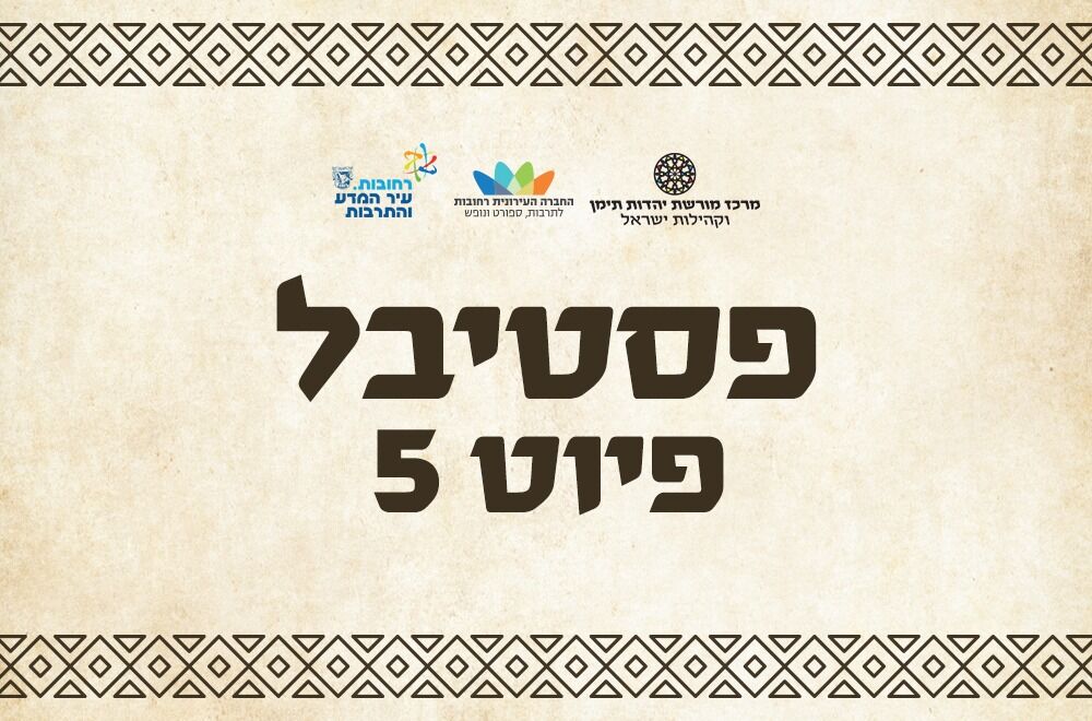 מרכז מורשת יהדות תימן וקהילות ישראל מזמין את תושבי רחובות לפסטיבל פיוט ה-5 שיתקיים במשך 3 ימים עם שלושה מופעי מוזיקה מיוחדים.