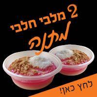 פיצה שתיים" ברחובות יוצאים במבצע הכולל הזמנת 2 מגשי פיצה L ב – 79 ₪ (לא כולל תוספות) ומקבלים במתנה 2 מנות מלבי. "פיצה שתיים" נמצאת ברחוב הרצל 157 ברחבת הקניון הקטן וטל' להזמנת משלוחים 08-9466155