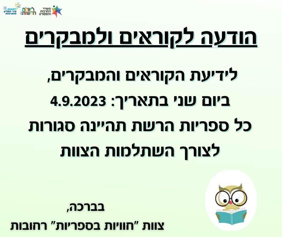 הספריות יפתחו מחדש ביום ג' 5.9.23