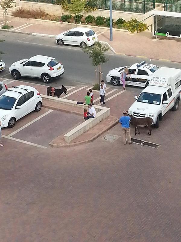 מחזה משעשע התגלה הבוקר לדיירי שכונת מקס שיין, כאשר בשעות הבוקר נראו 2 חמורים (למען הדיוק אתון ובת האתון) מטיילים להנאתם במדשאות של מקס שיין 6 – 5 למקום הוזעקה ניידת של הווטרינר העירוני וביחד עם השוטרים ניהלו מרדף רגלי משעשע להנאת התושבים עד אשר הם נלכדו. בסיום המרדף הגיע למקום אזרח בדואי אשר טען כי האתון והבת שייכים לו, אולם עובדי העירייה סרבו בשלב הזה להעביר אותן אליו. האתון ובתה הועברו בריאות ושלמות לחווה עד אשר יוחלט מה יעלה בגורלן.