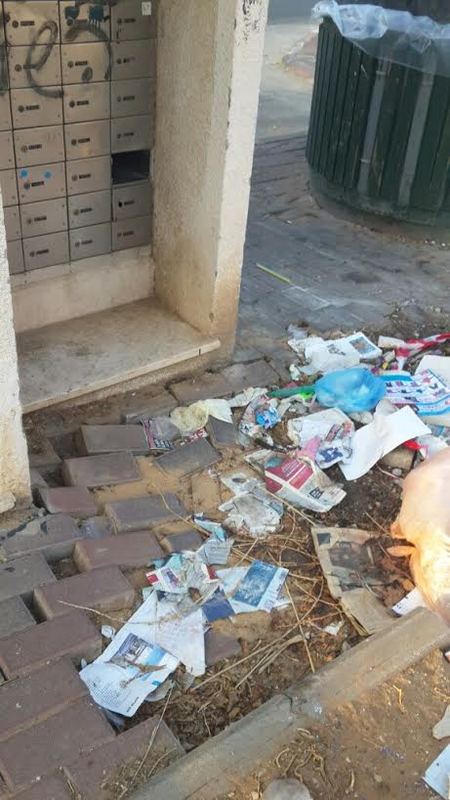עדי מסייל תושבת שכונת אושיות שלחה למערכת האתר תמונות המתארות את סביב מרכז חלוקת הדואר ברחוב גולמב אשר בשכונת אושיות וכותבת " אני מגיעה לשם בכל יום להוציא דואר עם תינוק בידיים ונאלצת לטפס מעל ערימה של זבל ואבנים משתלבות מפורקות" ומוסיפה, העברתי תלונה לעירייה ואני מקווה שינקו ויתקנו במהירות המצב נמשך חודשים ארוכים וזה בלתי נסבל.