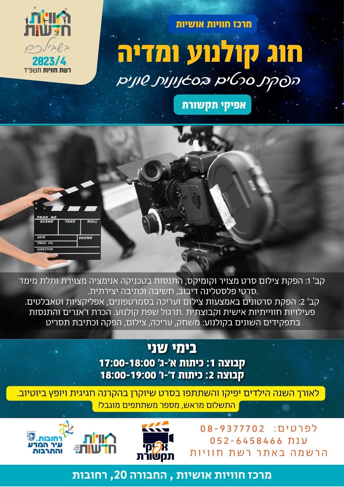 הילדים שלכם חיים בסרט? בואו לפתח את זה בחוג קולנוע ומדיה שייפתח במרכז חוויות אושיות