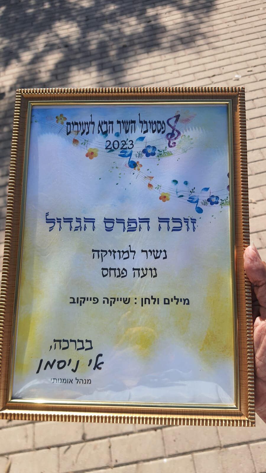 זוכה נוספת היא נועה פנחס תלמידת כיתה י' בקריית החינוך אמי"ת רון ארד במקום הראשון עם השיר: נשיר למוזיקה.