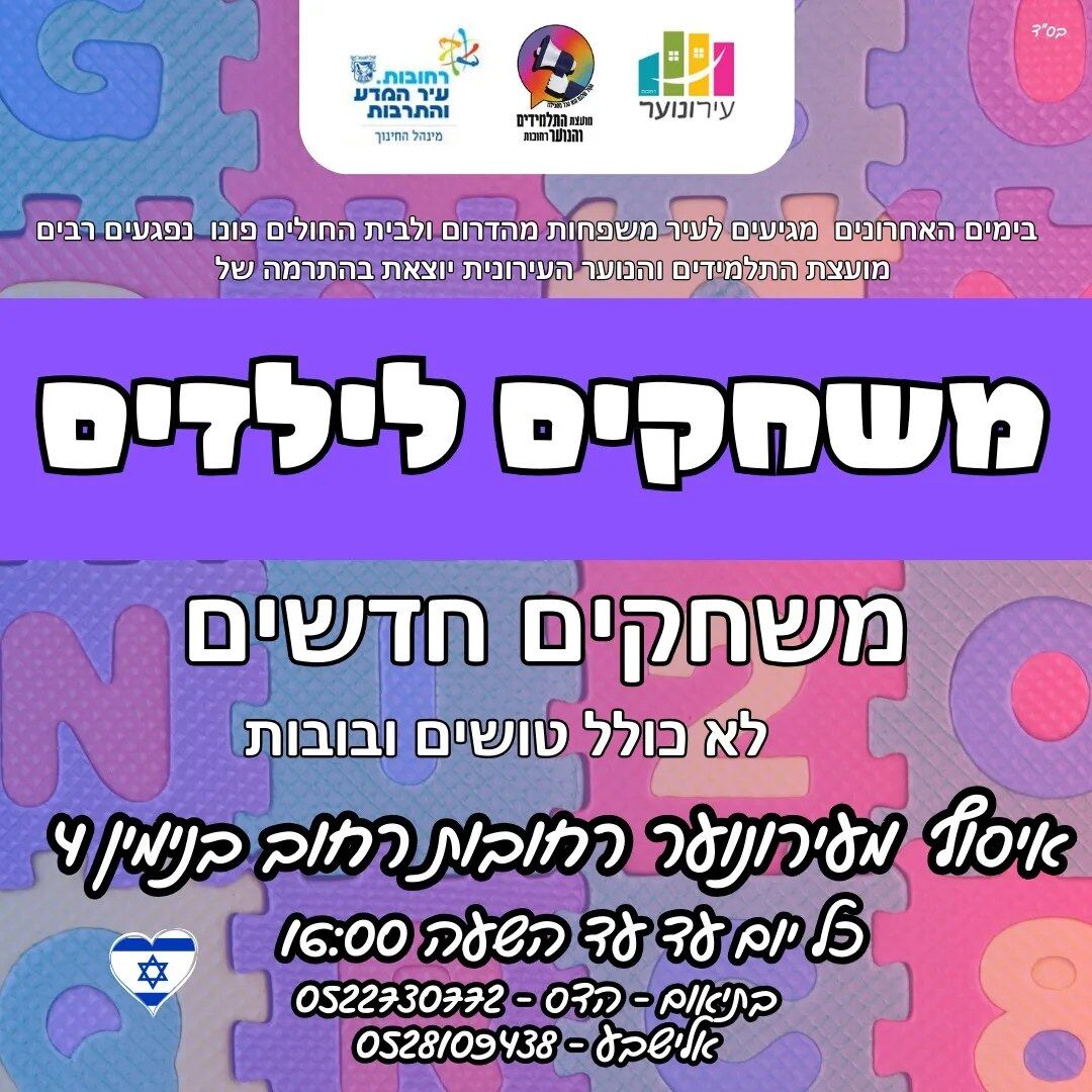 מחלקת הנוער עירונוער רחובות החלה במבצע איסוף משחקים למשפחות בדרום ולפצועים וכן פתחה את ההרשמה להצטרפות בני נוער למערך ההתנדבות