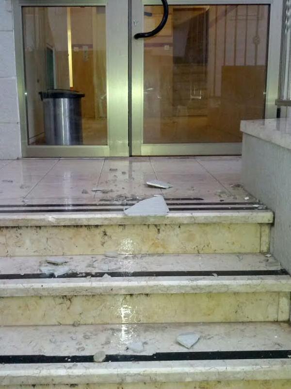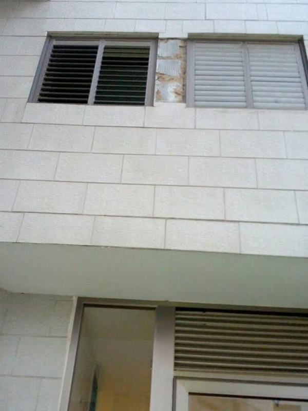 נס בשרונה. בעקבות הסופה נשרו שני אריחי חיפוי חיצוני מקומה שנייה. ללא נפגעים – צילום רמי א.