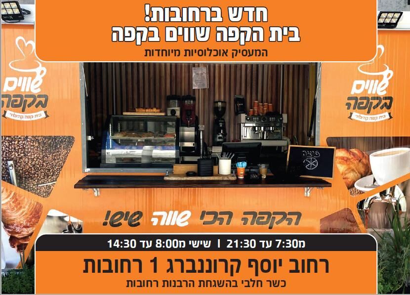 מתנ"ס רחובות החדשה מחזיר לפעילות את בית הקפה - שווים בקפה; כוחות הביטחון וחיילים יוכלו ליהנות מקפה ללא עלות