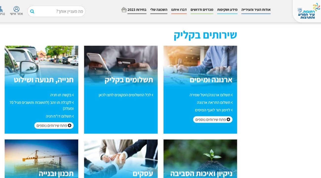 אנו מזכירים כי ניתן לקבל כל שירות שהוא הטפסים המקוונים אשר מופיעים באתר העירייה, הן במימשק בטלפון נייד והן במימשק במחשב נייח. להלן קישור >> https://www.rehovot.muni.il/services/