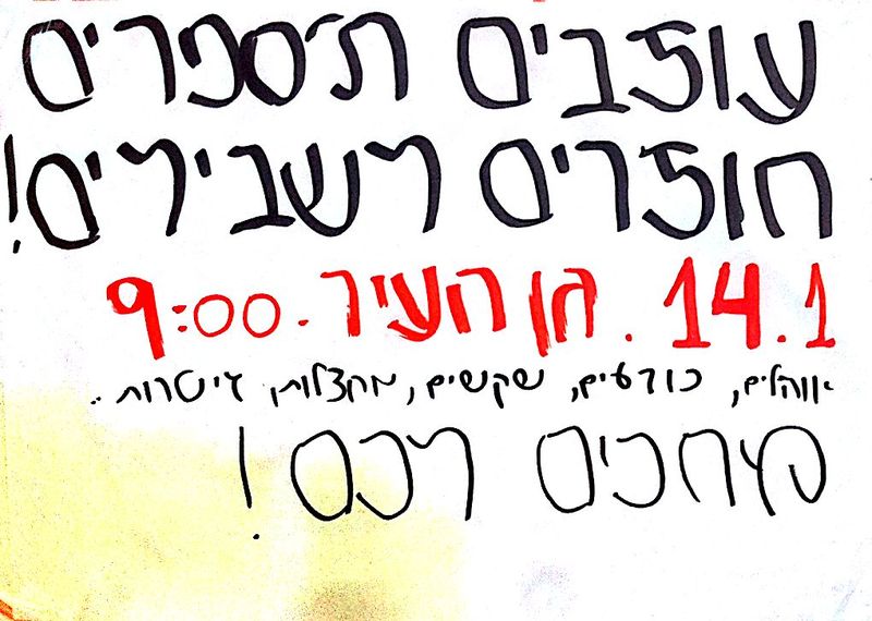 כרזת ההודעה של המארגנים ברחובות לתלמידי חטיבות הביניים והתיכוניים