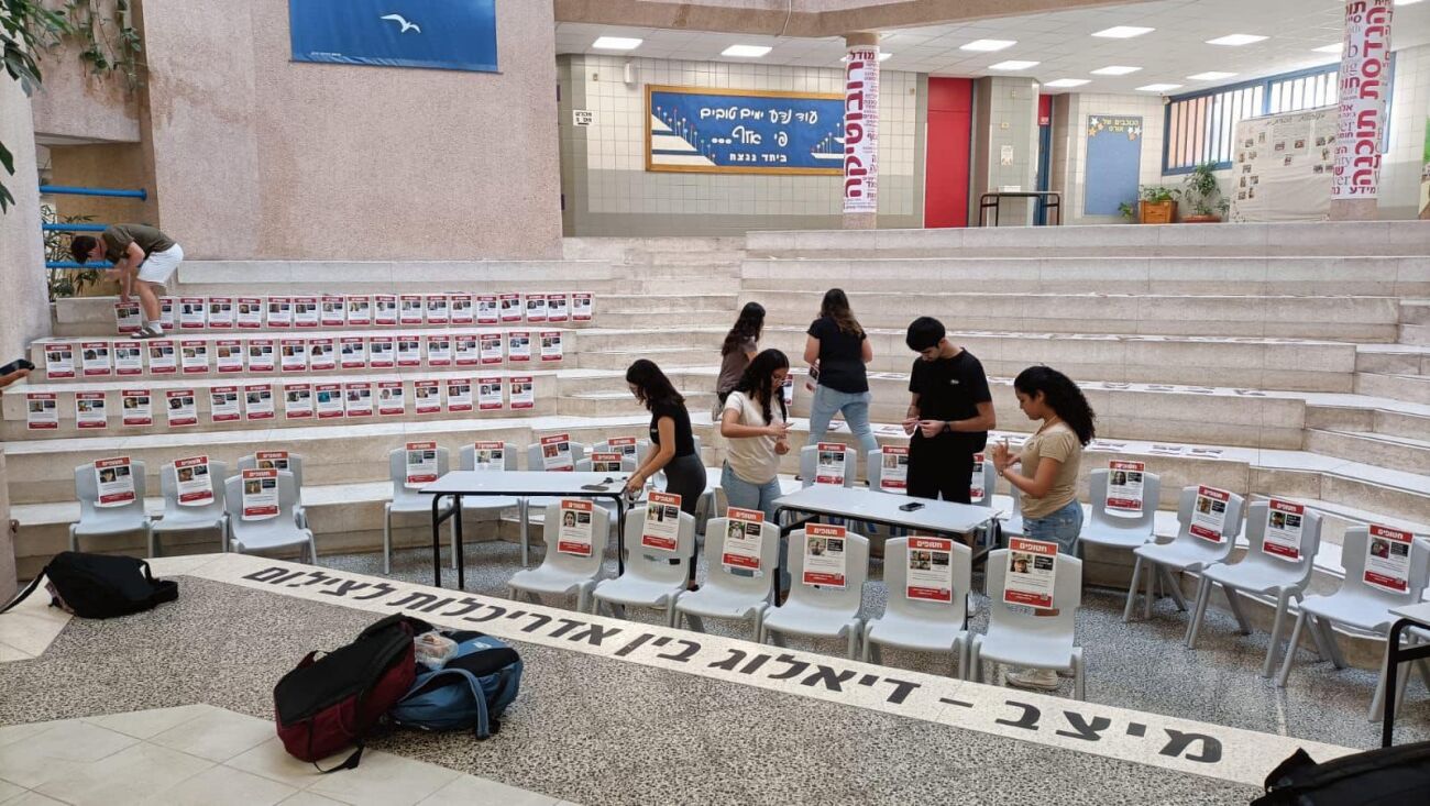 תלמידי אורט רחובות הפכו את אודיטוריום בית הספר למיצג הזדהות בו תלו את תמונות החטופים