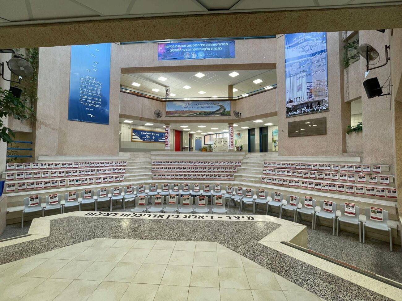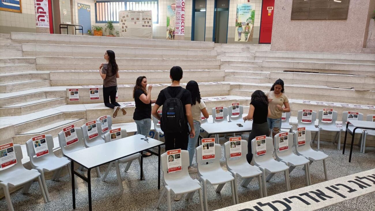 תלמידי אורט רחובות יצרו השבוע מיצג מרגש להזדהות עם משפחות החטופים. מי שאחראים על המיצג הם תלמידי כיתה יב5 שתלו את תמונות החטופים ושמותיהם באודיטוריום בית הספר זאת בנוסף להצבת 30 כיסאות עם שמות הילדים שנחטפו.