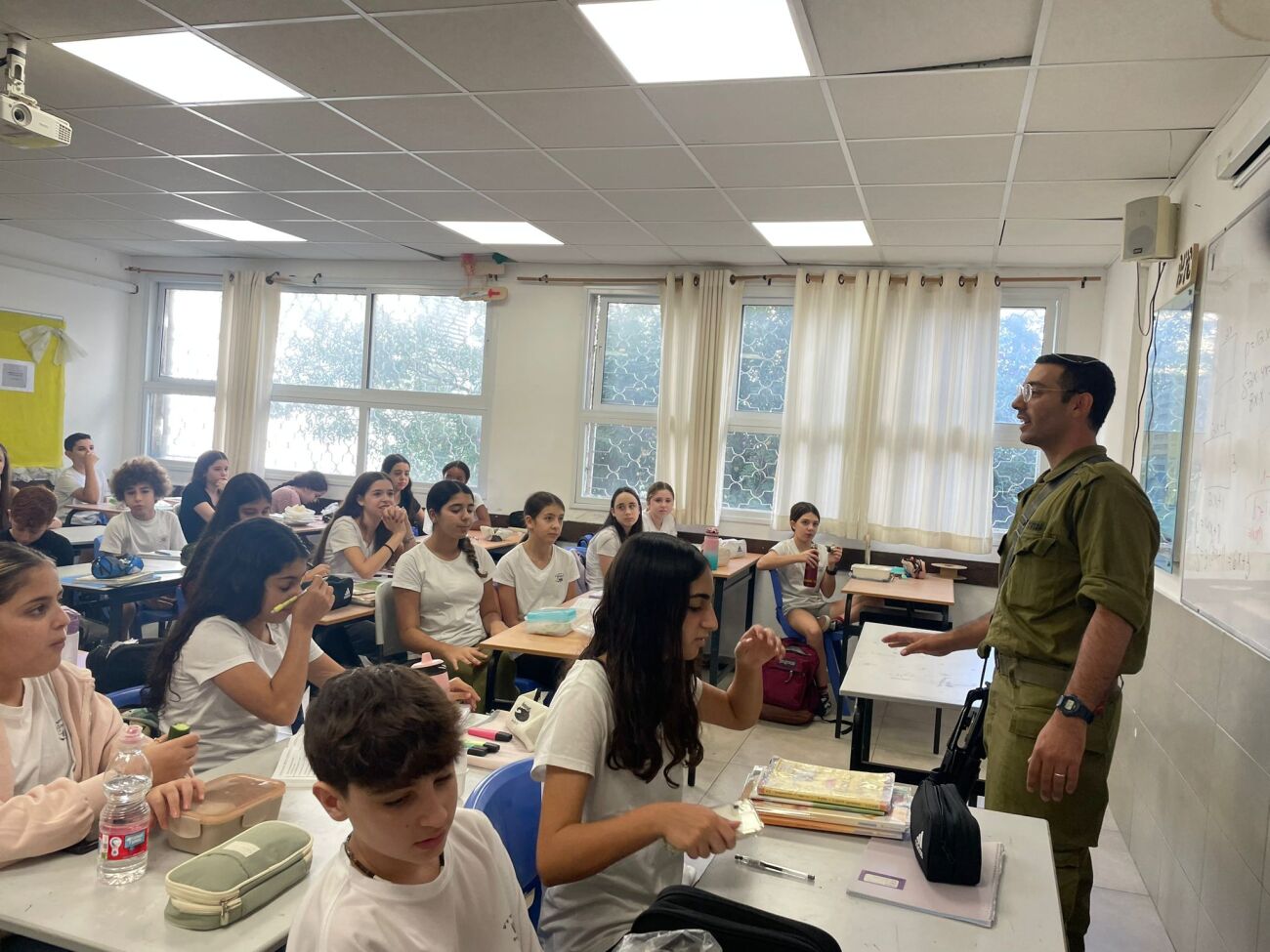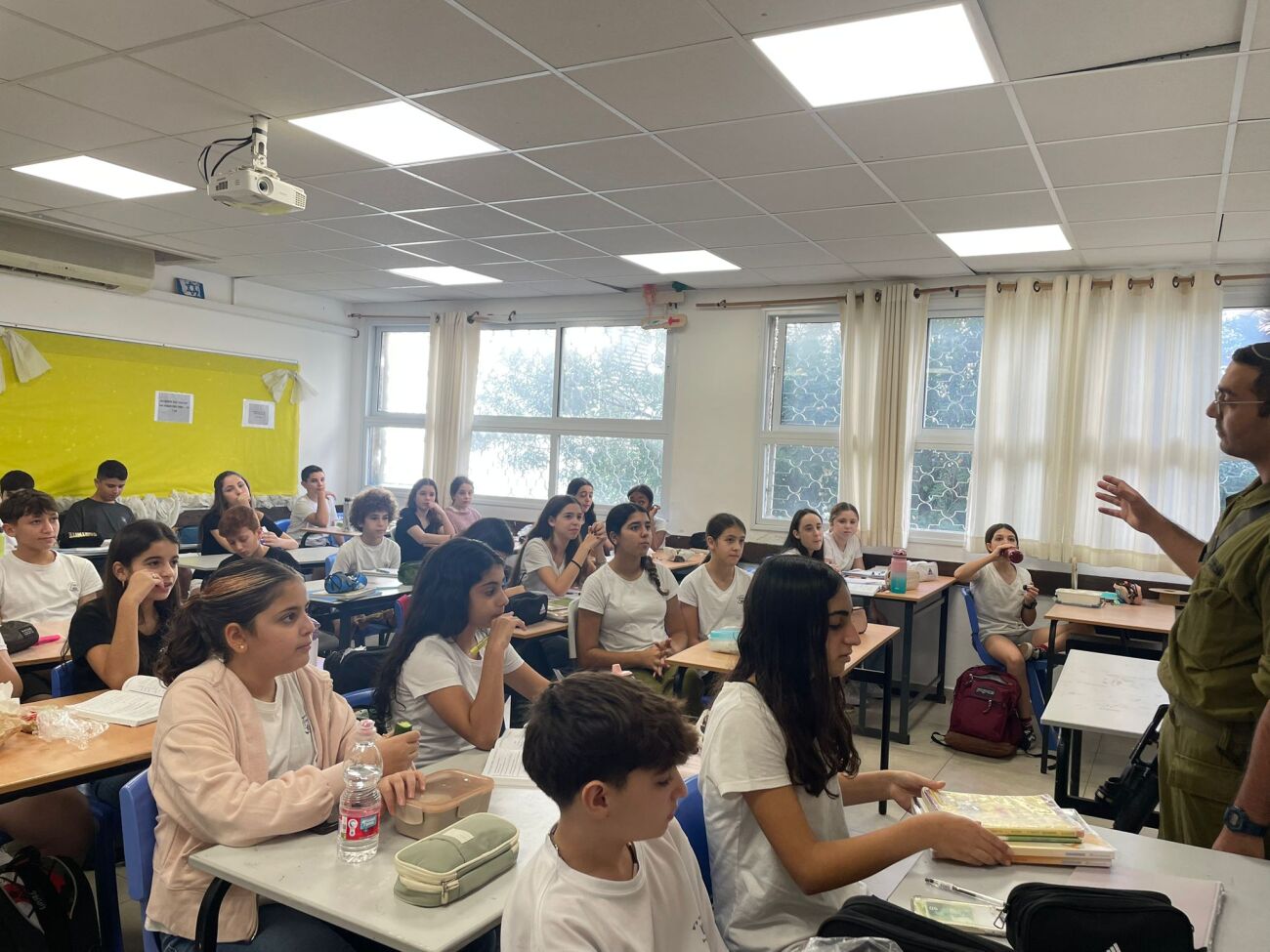משה אור אטון מחנך כיתה ז8 בחטיבה ב' דה שליט, יצא לביקור קצר מהמילואים ובא לחזק את תלמידיו שקיבלו אותו בשמחה ובהתרגשות רבה.