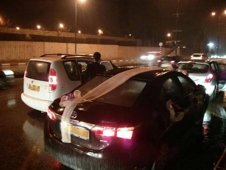 לפני זמן קצר (יום רביעי 11/2 סביב השעה 19:30) בדרך מנחם בגין, רכב אשר הסיע חתן וכלה היה מעורב בתאונת דרכים עם רכב , לשמחת כולם החתן והכלה לא נפגעו, והם המשיכו אל האולם ברכב חלופי כנראה של חבר. ואילו ברכב השני שהיה מעורב בתאונה הייתה פצועה קל וכוננים שהגיעו למקום העניקו טיפול לפצועה קל שפונתה בהמשך ע"י נט"ן של מגן דוד אדום.