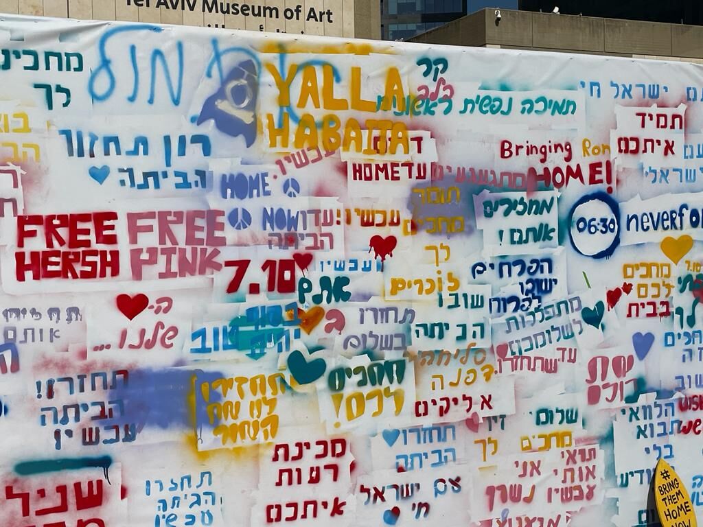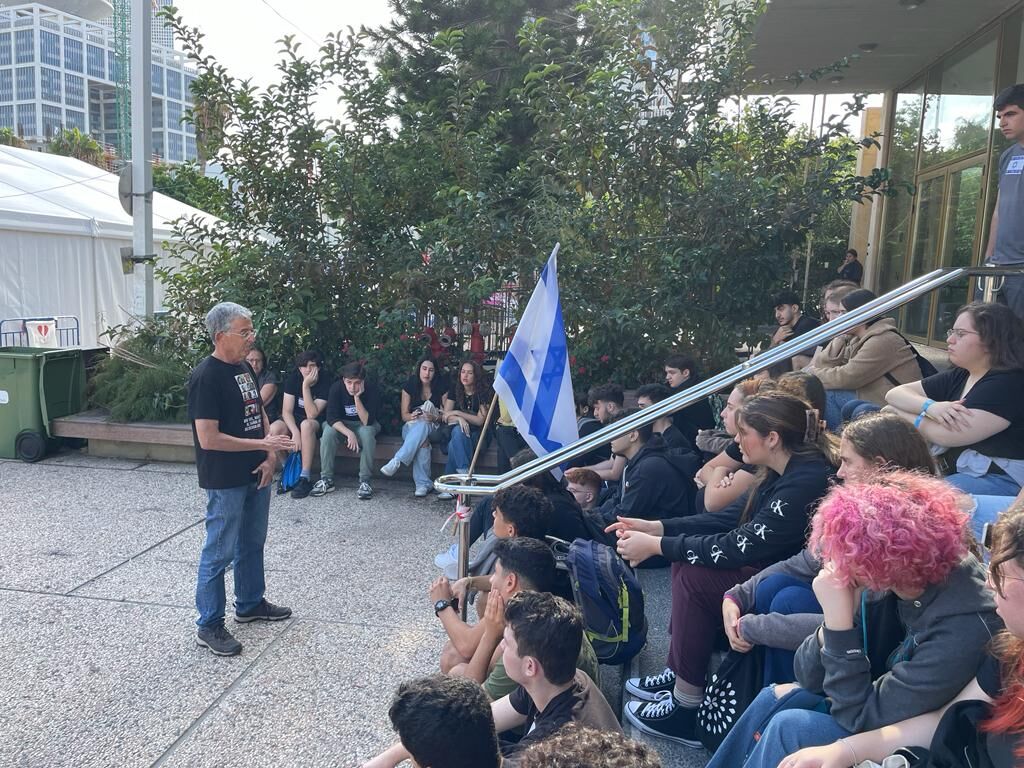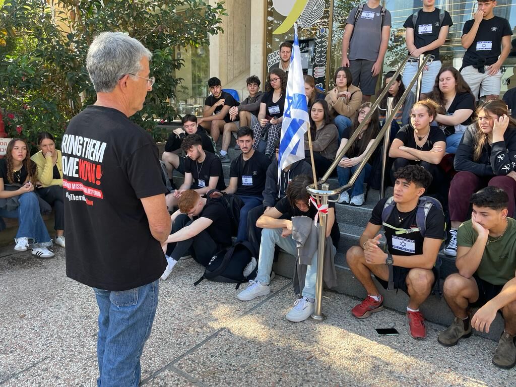 תלמידי דה שליט רחובות הגיעו לביקור הזדהות עם משפחות החטופים בכיכר החטופים בת"א
