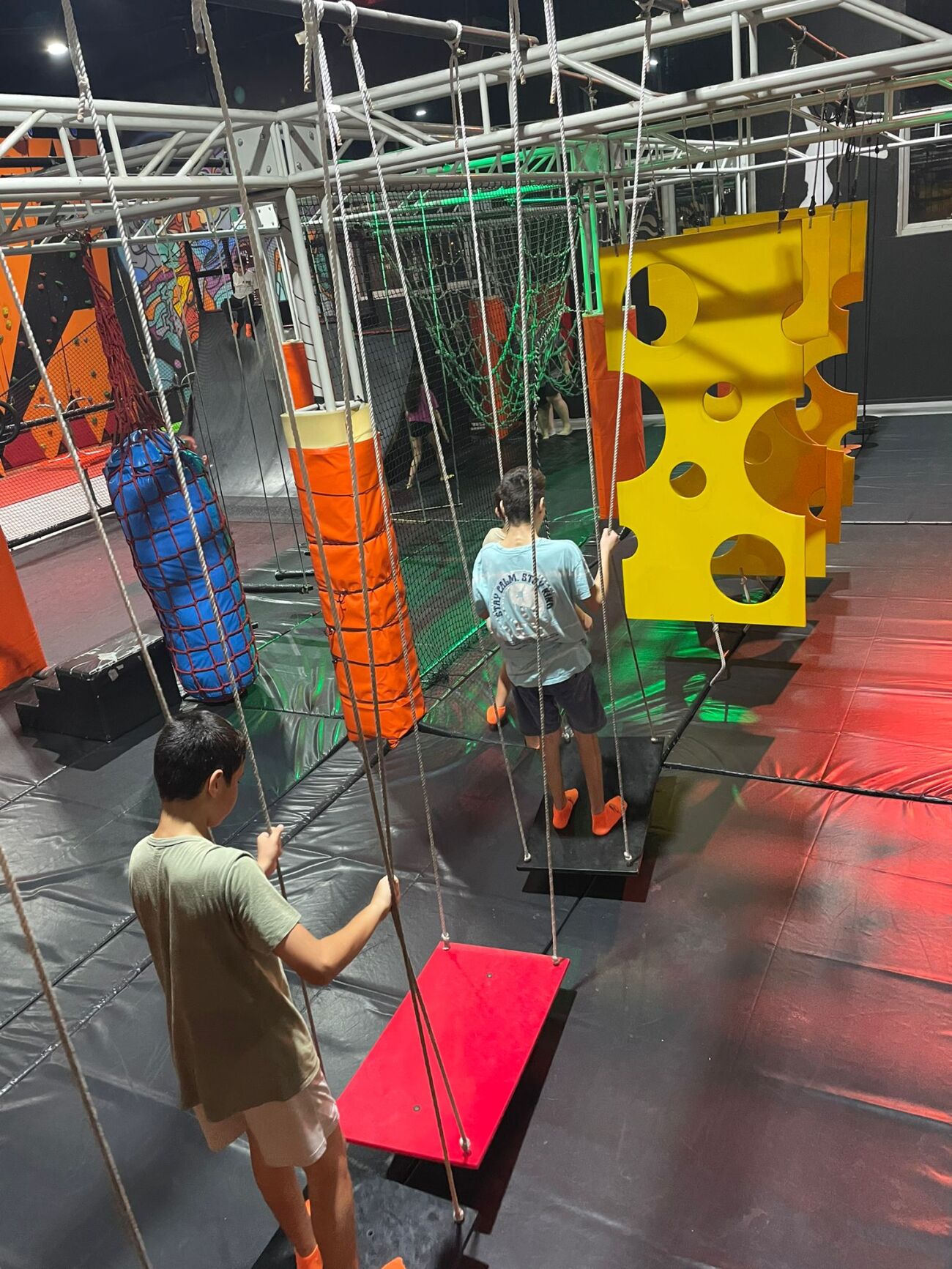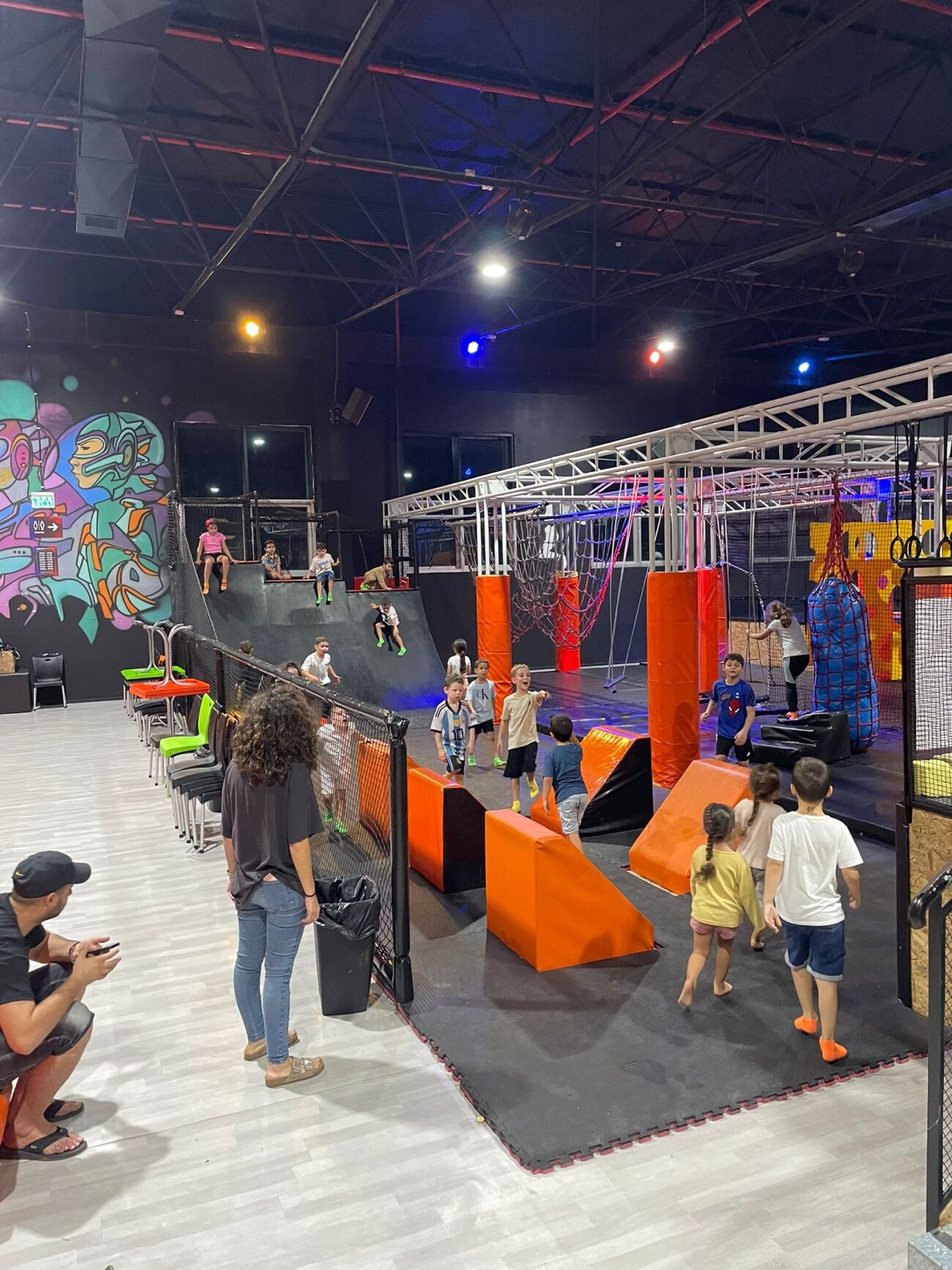המתחם כולל: מתחם נינג'ה, טרמפולינות, קיר טיפוס, בריכת וויטפול ומתחם ג'ימבורי ומתאים לילדים מגיל שנה ועד גיל 16.