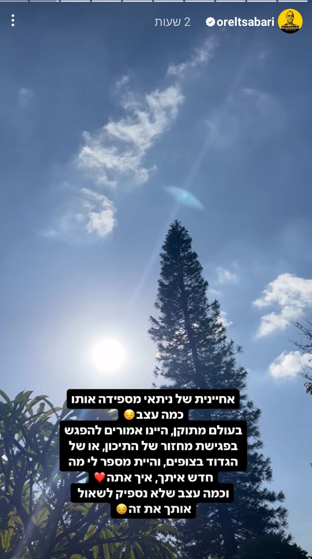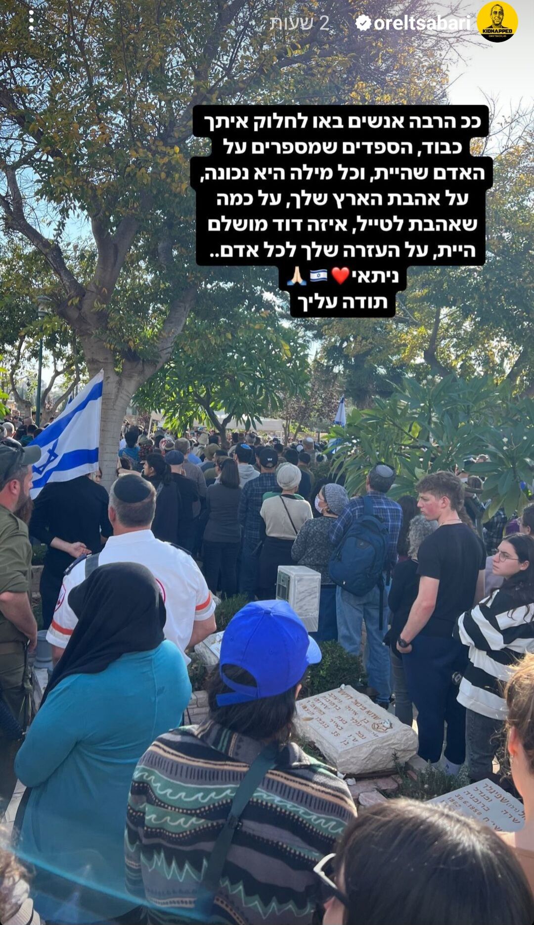 השחקן הרחובותי, אוראל צברי, נפרד מרס"ר ניתאי מייזלס שלמד איתו בתיכון ובצופים: "תמיד היית אכבר גבר! עוזר לזולת ואכפתי לסביבה. העולם כבר מרגיש בחסרונך איש יקר"