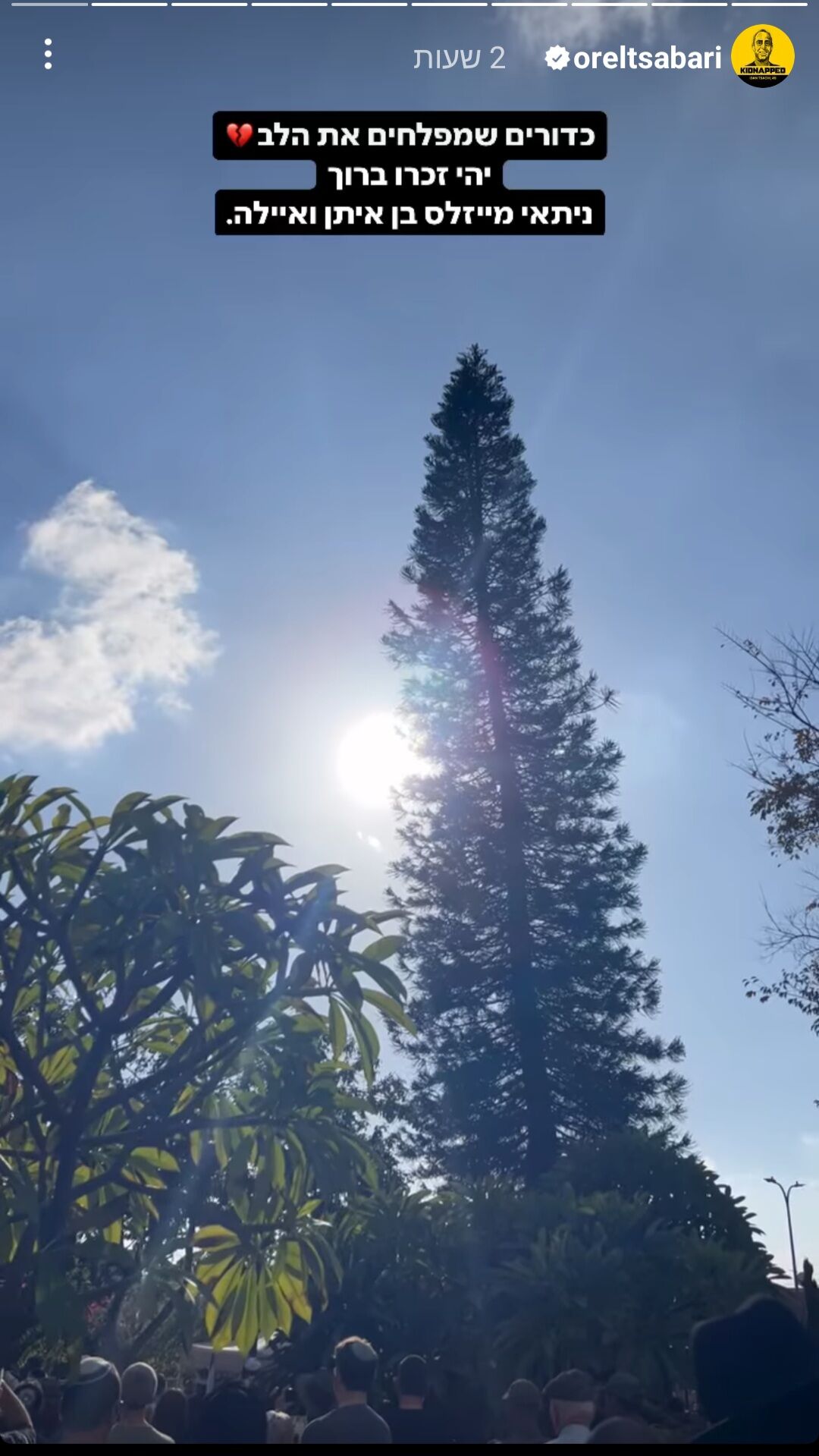 רבים מתושבי רחובות ליוו היום את רס"ר ניתאי מייזלס ז"ל בדרכו האחרונה שנהרג במהלך הלחימה בעזה. אל ההלוויה הגיע גם השחקן אוראל צברי, שלמד איתו בתיכון והם היו יחד גם בצופים. צברי הספיד בעמוד האינסטגרם שלו את מייזלס ואף העלה תמונות מתקופת נערותם בתיכון ובצופים.