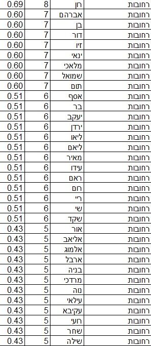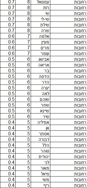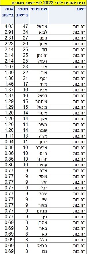 השם הכי נפוץ לתינוקות בנים ברחובות - אריאל עם 47 בחירות