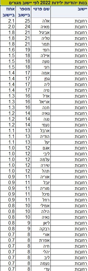 השם הכי נפוץ לתינוקות בנות ברחובות - אלהל עם 25 בחירות