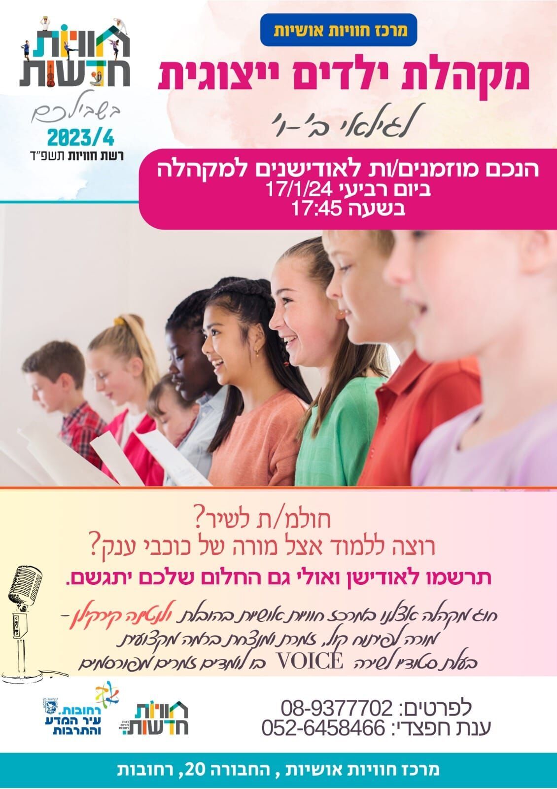 אודישן למקהלת הילדים בחוויות אושיות רחובות: יום רביעי 17/1
