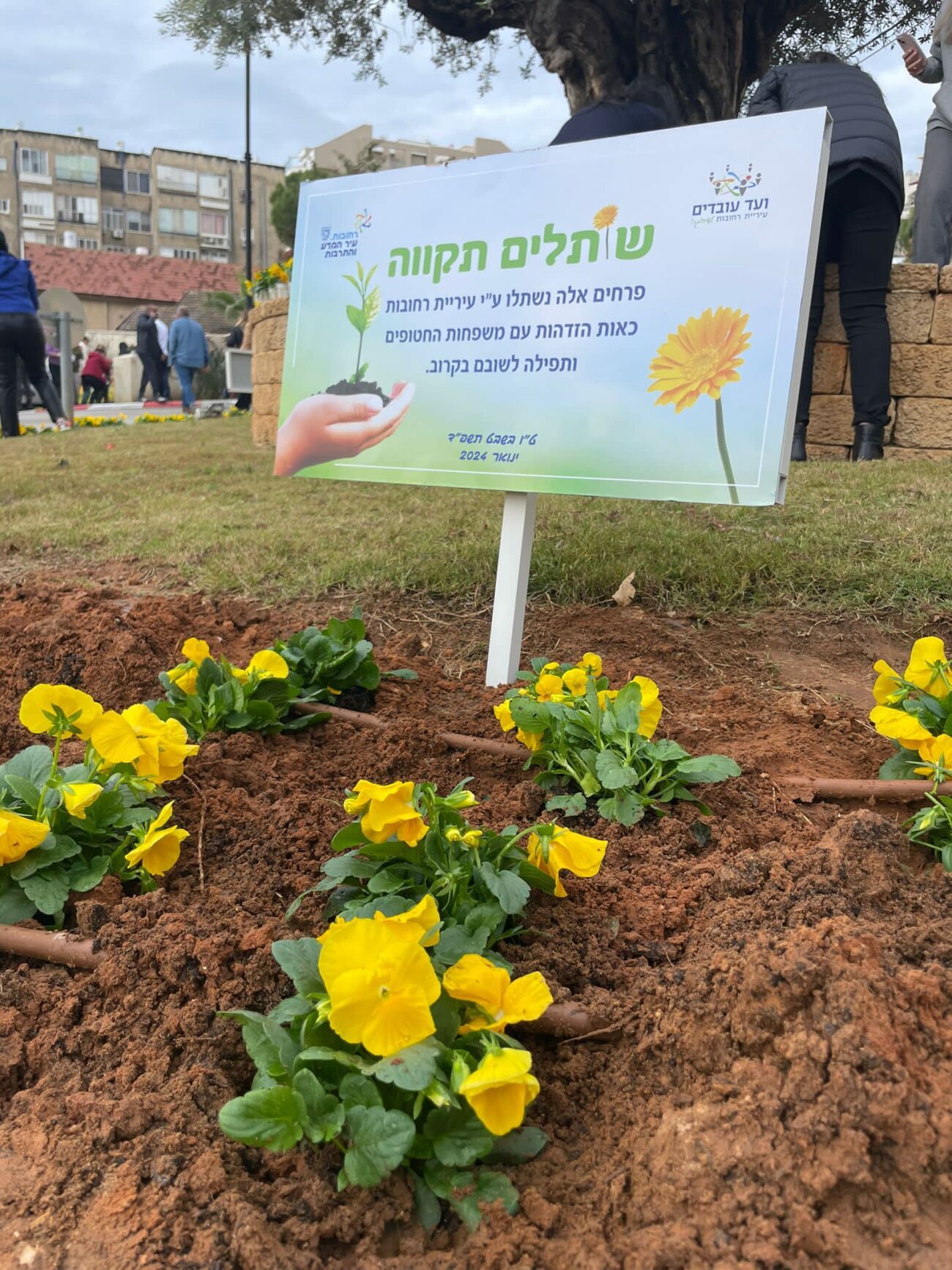 ״היוזמה שלנו לשתול היום, בחג ט"ו בשבט, 136 פרחים בכיכר מרכזית בעיר היא עוד דרך לשתול תקווה ולצפות לחזרתם המהירה של החטופות והחטופים בשלום. הפרחים הצהובים ששתלנו היום בהכיכר המרכזית יזכירו לכולנו שישנם עדיין 136 חטופים בעזה שחייבים לחזור הביתה.״
