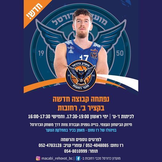 בית ספר לכדורסל מכבי רחובות מרחיב את הפעילות שלו ופותח קבוצות חדשות בבית הספר שביט וכן בבית ספר קציר ב' ברחובות.